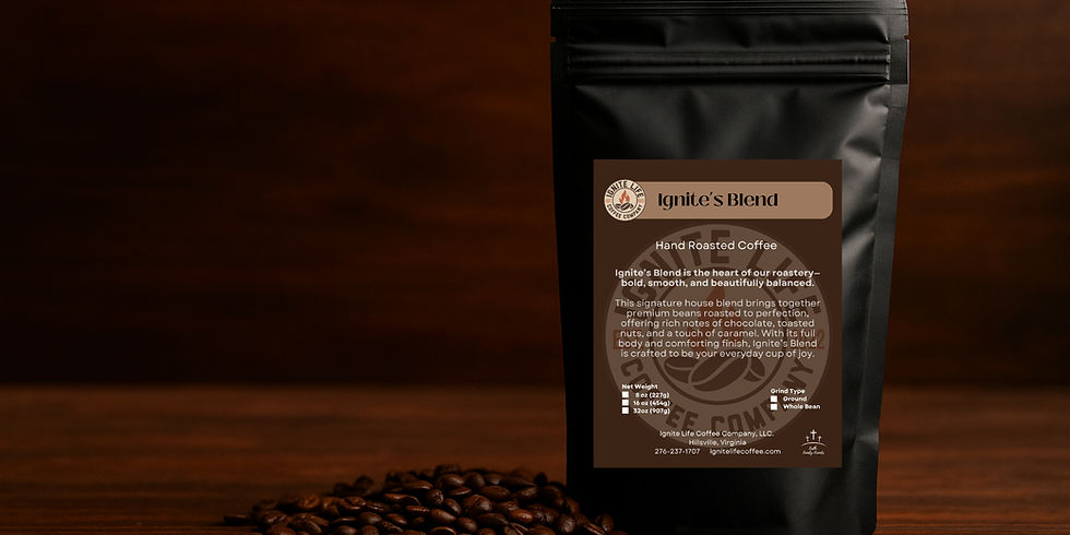 Ignite Life Coffee was born from a husband’s search to recreate an unforgettable cup of coffee — and his wife’s true love for it. What started in a home kitchen has grown into a faith-driven, small-batch roastery with a passion for community and quality. Every bag we roast is crafted with purpose, joy, and connection in mind.
